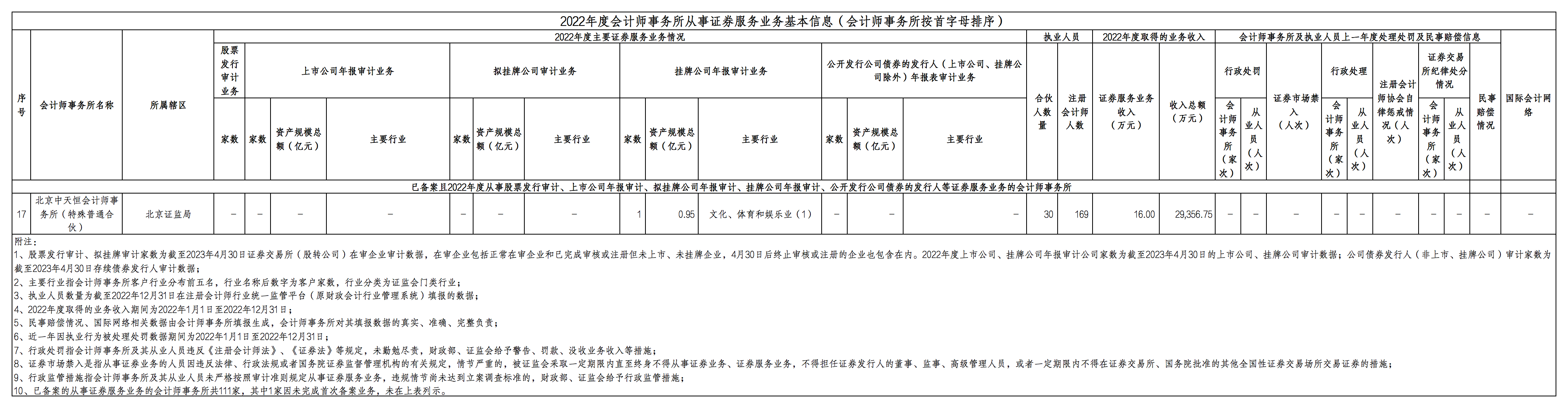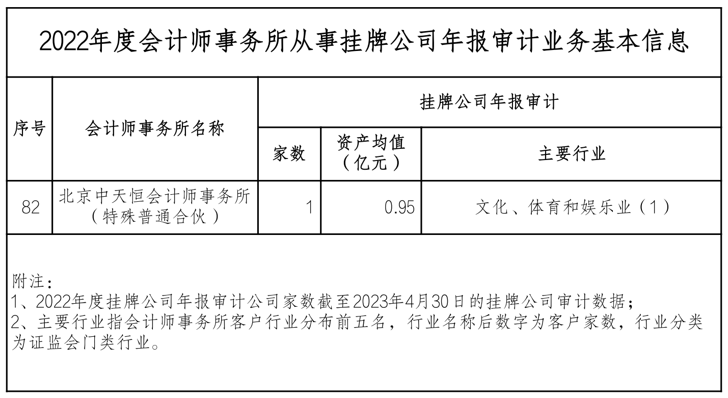 北京中天恒會(huì)計(jì)師事務(wù)所(特殊普通合伙)2022年度信息披露