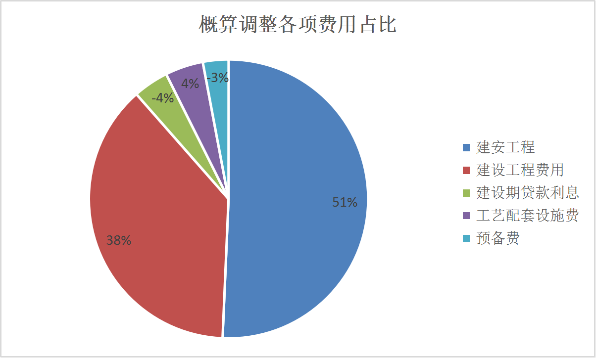 另利息調整占總體調整費用的4%,工藝配套設施費用占總體調整費用的2%。