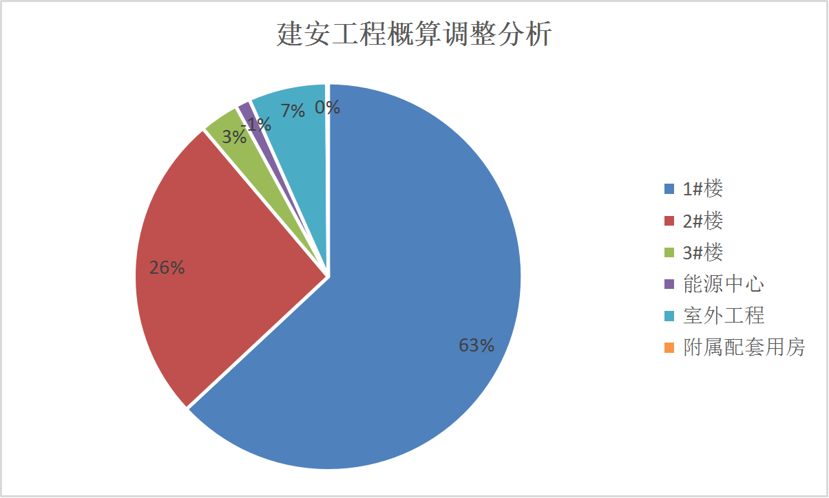 建安工程占總體調整費用的54%,為主要調整項,具體調整分析參見附圖1、2,其中建安工程調整主要為1#、2#樓,具體分析參見附圖3。