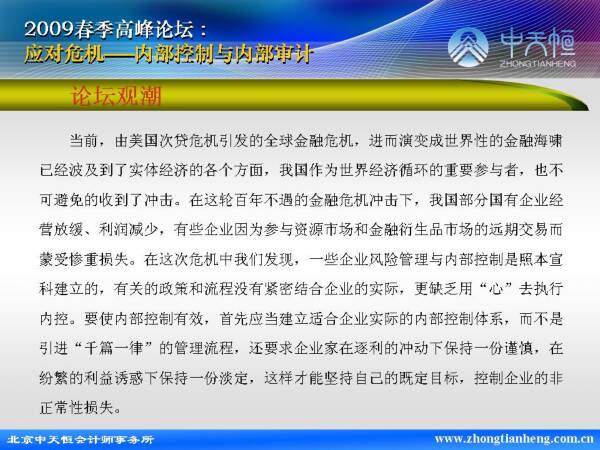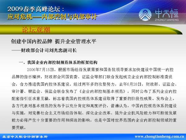 2009春季高峰論壇:應(yīng)對(duì)危機(jī)--內(nèi)部控制與內(nèi)部審計(jì)