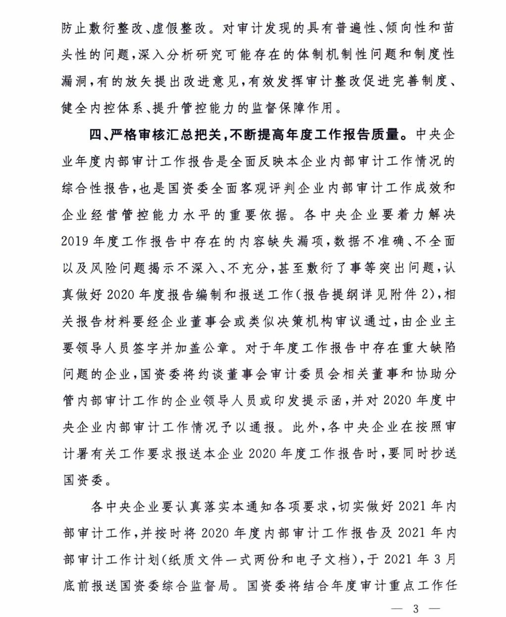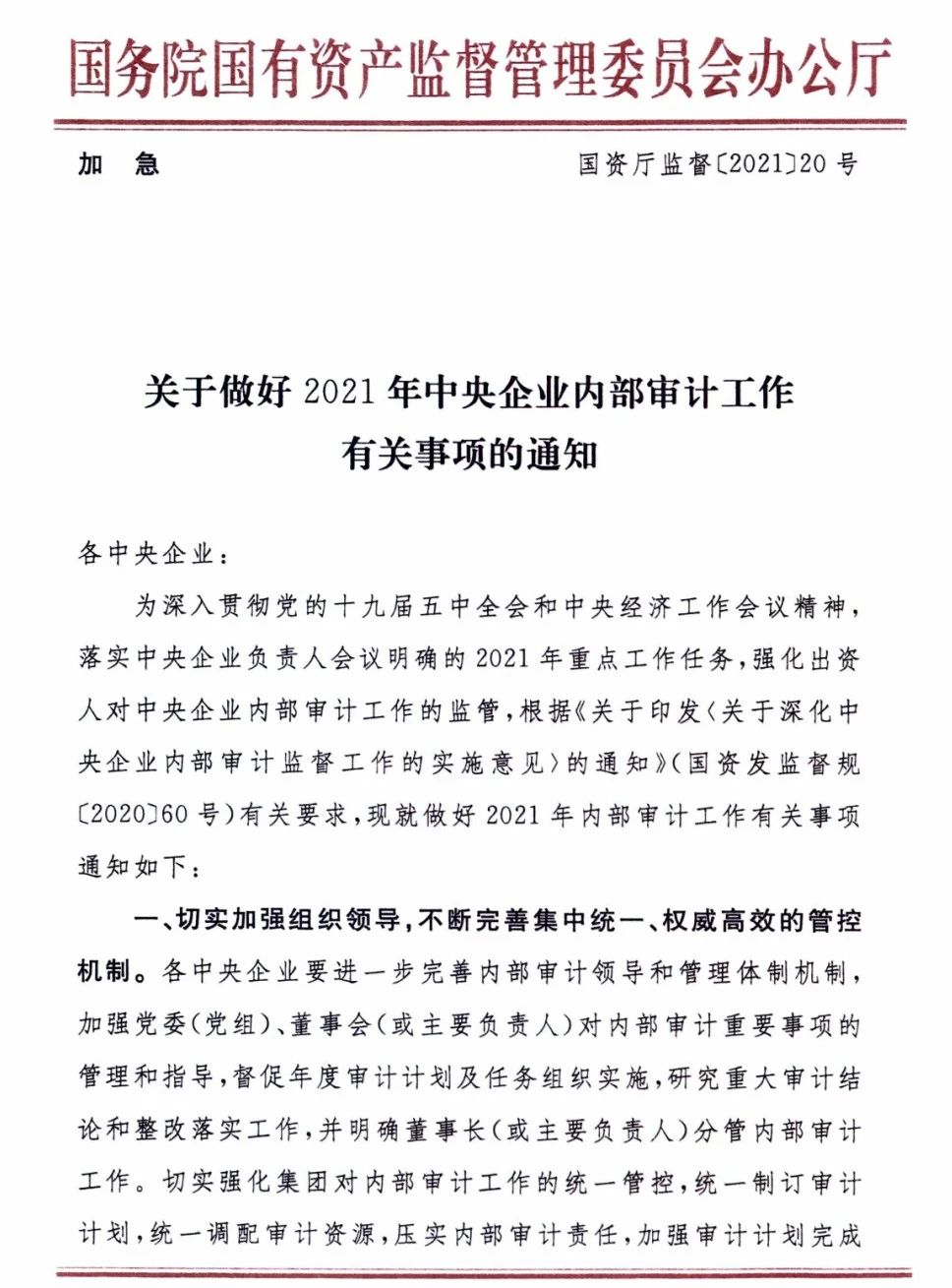 關(guān)于做好2021年中央企業(yè)內(nèi)部審計(jì)工作有關(guān)事項(xiàng)的通知