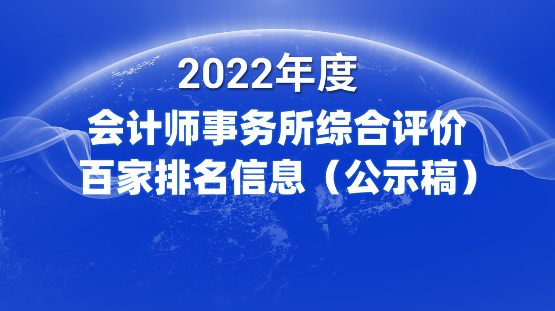 中國注冊會計師協(xié)會關(guān)于發(fā)布《2022年度會計師事務(wù)所綜合評價百家排名信息(公示稿)》