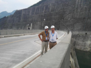 (注:三峽集團(tuán)曾洪主任與李三喜總經(jīng)理參觀大壩壩頂)