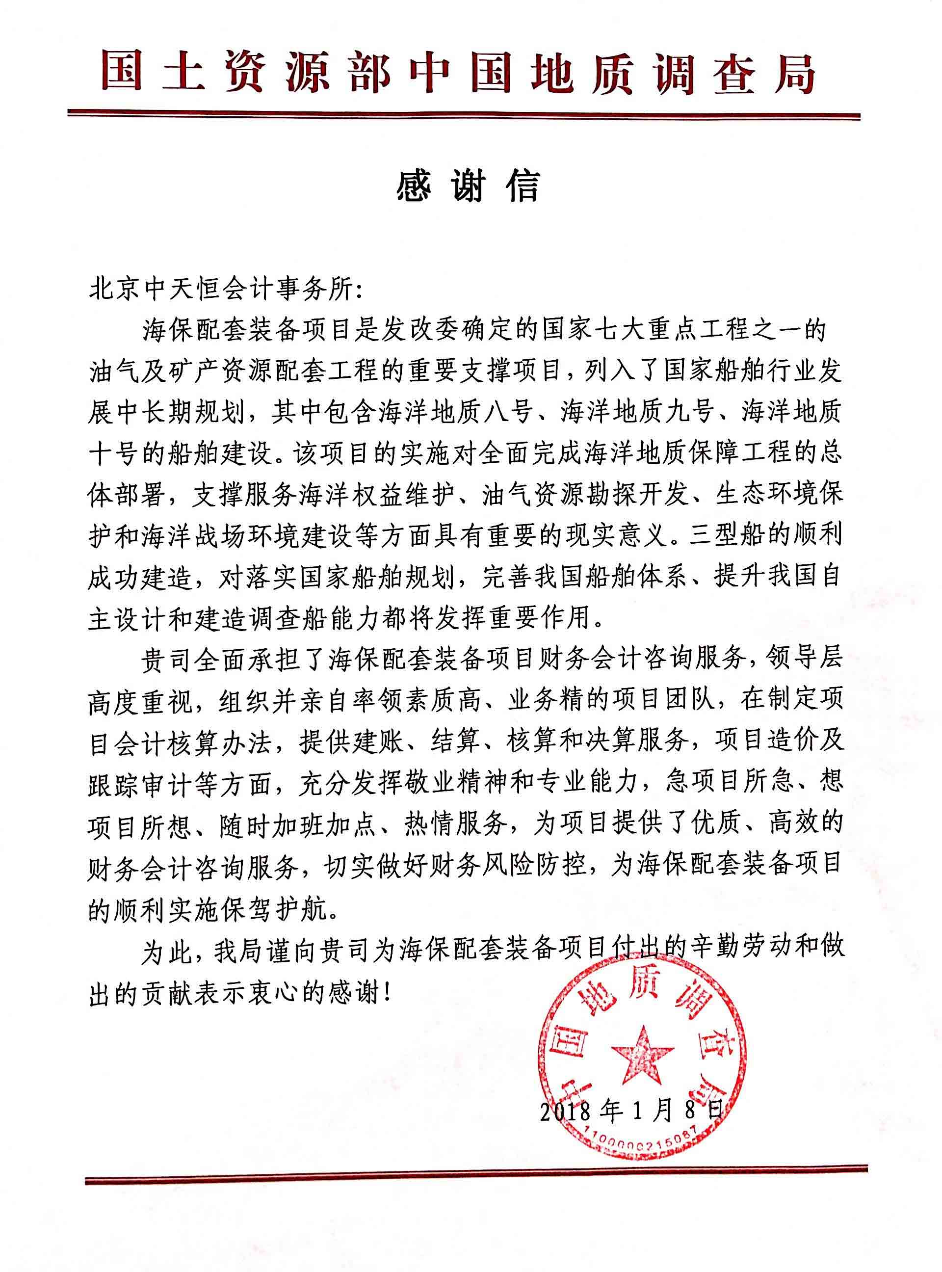 近日,我所接到中國地質(zhì)調(diào)查局的感謝信,感謝我所在中國地質(zhì)調(diào)查局海保項目跟蹤審計中所做出的努力與貢獻(xiàn)。