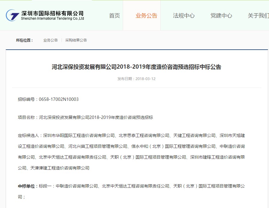 奮力拼搏創(chuàng)佳績,新年捷報奏凱歌。正值春暖花開之際,2018年3月北京中天恒達工程咨詢有限責任公司在"河北深保投資發(fā)展有限公司2018-2019年度造價咨詢預選招標項目"中以絕佳的實力迎來了商業(yè)、住宅、工業(yè)三個標段全部入圍的好消息。