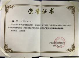 同時(shí)我公司副總經(jīng)理馬玉峰,副總經(jīng)理肖文、項(xiàng)目負(fù)責(zé)人馬祝坤,項(xiàng)目工程師張楨4人分別獲得“BIM最佳應(yīng)用推動者”“BIM最佳應(yīng)用推動者”榮譽(yù)證書。