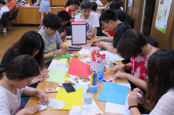 活動(dòng)期間,各個(gè)團(tuán)隊(duì)成員以小組為單位,一一上臺展示各自的創(chuàng)作品,介紹作品的創(chuàng)意、配色等等,應(yīng)邀參會(huì)的武戰(zhàn)偉部長、唐昀皓經(jīng)理、白晏寧經(jīng)理組成評委組,對各隊(duì)的隊(duì)名、隊(duì)號、個(gè)人風(fēng)采及創(chuàng)作品進(jìn)行打分和點(diǎn)評。