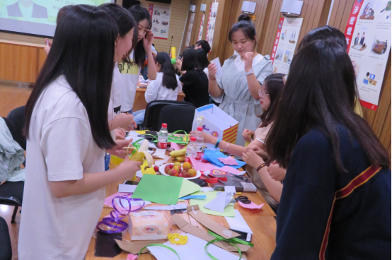 小游戲結(jié)束后,各隊(duì)隊(duì)長按照游戲環(huán)節(jié)中的輸贏名次,領(lǐng)取了“變廢為寶”的相關(guān)工具材料,回到各隊(duì)領(lǐng)域發(fā)揮隊(duì)員想象力、創(chuàng)造力與凝聚力,進(jìn)行“寶貝”創(chuàng)作。