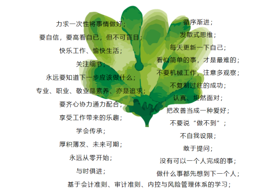 為了讓新員工更好地融入中天恒、融入審計(jì)一部、融入團(tuán)隊(duì),有效地提升為客戶服務(wù)意識,深切地理解與明確審計(jì)工作職責(zé),提高工作效率;同時(shí)也為了培養(yǎng)新員工間的感情,方便新員工間的溝通與協(xié)作,爭做優(yōu)秀合格的中天恒人。