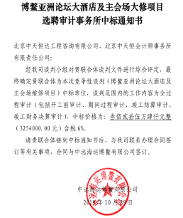 繼2014-2016年博鰲亞州論壇永久會(huì)址二期酒店項(xiàng)目、新聞中心項(xiàng)目跟蹤審計(jì)后,我司與中遠(yuǎn)博鰲公司簽訂了兩年咨詢服務(wù)合同(2018-2019年),2019年10月我司又中標(biāo)博鰲亞洲論壇大酒店及主會(huì)場(chǎng)大修項(xiàng)目、論壇公園項(xiàng)目跟蹤審計(jì)。酒店大修項(xiàng)目投資額3.09億元,論壇公園投資額4000萬元。我司此次中標(biāo),源于我司五年來的優(yōu)質(zhì)服務(wù),源于中遠(yuǎn)博鰲公司及中遠(yuǎn)海運(yùn)集團(tuán)的信任。