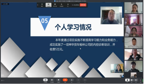 會議持續(xù)到中午12:30,進行了午間簡短的休息。下午2:00整,大家再次上線,會議繼續(xù)進行,彭瑞華、蘇丁銳、馮永芳等3位新晉事業(yè)組長也對2019年個人工作情況進行了總結(jié),對工作中存在的問題與不足做了深刻的剖析,并提出了改進方法和思路,同時對2020年擔(dān)任事業(yè)組組長后對于考核任務(wù)實現(xiàn)、項目管理、質(zhì)量控制、團隊管理、投標(biāo)管理等方面提出了詳細的計劃和想法。