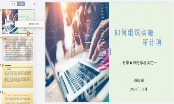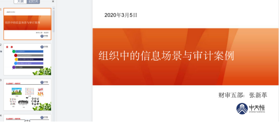 經(jīng)與質(zhì)控部于維嚴(yán)老師溝通,程余《高校審計案例分析總結(jié)》、潘曉麗《如何組織實施審計項目》、張新革《組織中的信息場景與審計案例》以及王若鷗《聯(lián)通公司竣工決算審計》四個課題被推薦到釘釘中天恒大講堂進行所內(nèi)宣講。