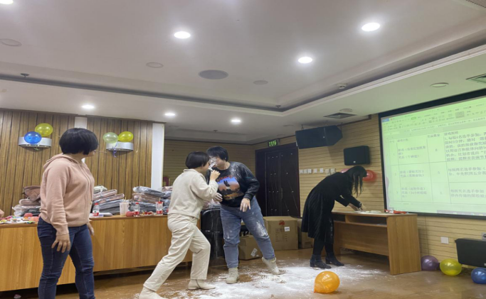 組織了活躍氣氛的團(tuán)建小游戲,熱場(chǎng)小游戲你來(lái)比劃我來(lái)猜,大家打開腦洞,默契配合。蒙眼互打更是逗得同事們前仰后合,面粉傳遞和電臀達(dá)人游戲大家也是顧不得形象的融入其中,玩的不亦樂乎,年度總結(jié)會(huì)在歡聲笑語(yǔ)中酣暢落下帷幕。