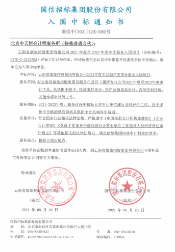 繼云南機(jī)場集團(tuán)昆明機(jī)場財(cái)務(wù)監(jiān)理、云投集團(tuán)吳哥機(jī)場財(cái)務(wù)監(jiān)理項(xiàng)目之后,近期我所中標(biāo)云南省審計(jì)廳審計(jì)服務(wù)項(xiàng)目和中標(biāo)云南省康旅控股集團(tuán)有限公司2021年度至2023年度審計(jì)服務(wù)入圍項(xiàng)目,兩個(gè)項(xiàng)目是我所除機(jī)場項(xiàng)目外首次進(jìn)入較大的云南地方項(xiàng)目,對拓展云南市場具有示范意義。