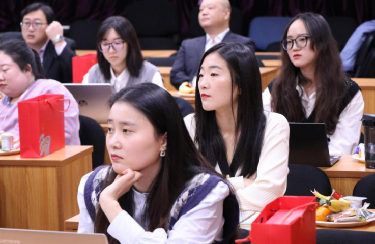 美女員工們認(rèn)真傾聽(tīng)發(fā)言的樣子