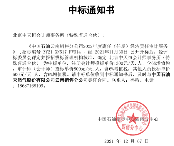2021年12月7日,經(jīng)過投標(biāo), 基建審計部承接了中國石油云南銷售公司所屬單位負(fù)責(zé)人離任(任中)經(jīng)濟責(zé)任審計項目。本項目是我所首次進入云南省中石油公司的項目,在公司發(fā)展的藍圖上寫下輝煌的一筆,也為我司今后的快速發(fā)展打下堅實基礎(chǔ)。