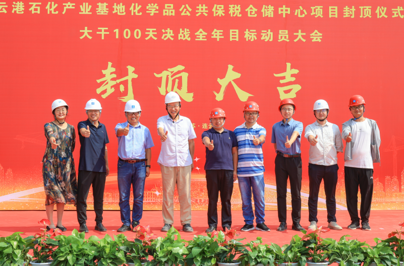 2022年9月7日,連云港石化產(chǎn)業(yè)基地化學(xué)品公共保稅倉儲中心項目綜合樓項目封頂。