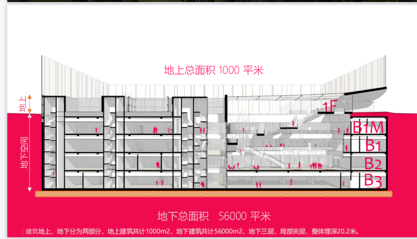 清華活動(dòng)中心項(xiàng)目新建總建筑面積為57000平米,地上面積為1000平米,地下面積為56000平米,建筑基底面積為676平米。
