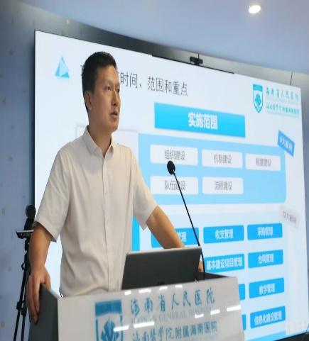 2024年7月19日上午,海南省人民醫(yī)院召開了項目啟動會。醫(yī)院黨委書記馬志健、副院長劉玉林、臨床學院黨委副書記王暉慧,醫(yī)院各職能部門負責人、內控管理員,中天恒副總經理鮑良、咨詢三部部長李凡及項目組成員共同參加了此次會議。