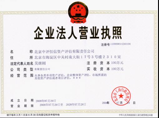 中評(píng)恒信評(píng)估公司