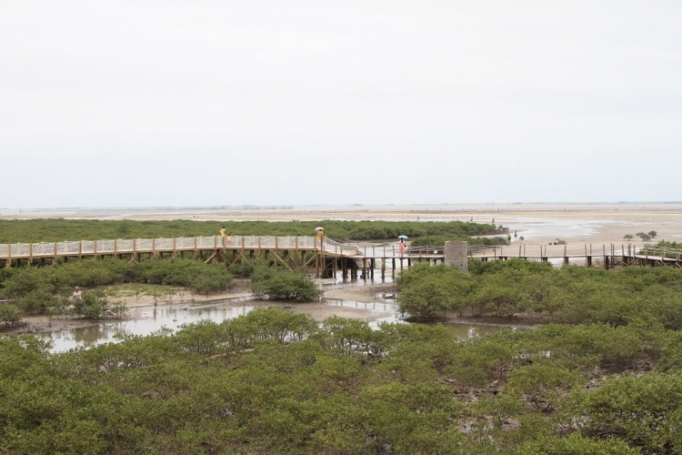 金海灣紅樹林景區(qū)與北海銀灘屬于一脈相連。 整個(gè)景區(qū)面積約20平方公里,由紅樹林觀光帶、金灘和主園區(qū)三部份構(gòu)成。區(qū)內(nèi)擁有一片2000多畝的海上“森林衛(wèi)士”——紅樹林,百種鳥類、昆蟲、貝類、魚、蝦、蟹等生物在此繁衍棲息,是我國(guó)罕見的海洋生物多樣性保護(hù)區(qū)。