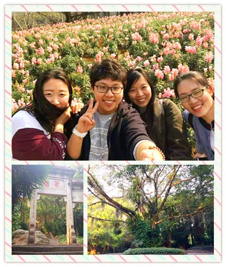 一行人進入園區(qū)的那一刻,就被花花草草吸引,紛紛拿出神器各種自拍,每個女生都興奮的不得了,真的是美美噠!那里樹木成蔭,在柏油路兩邊靜靜的佇立著,有松樹、榕樹、棕櫚樹,還有很多叫不上名的。身處其中,感覺猶如破籠的小鳥,找到了那許久沒有屬于自己的自由!狀元閣、水月俺、棕櫚園、觀音禪寺等等,每一處都有它獨有的魅力。一路走著,那微涼的風、絡繹不絕的行人、滿眼的綠、歡快清脆的鳥鳴聲,編織成了一段唯美的電影。
