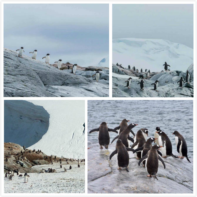 第九天:可以說是南極之行的高潮。早上,從夢中醒來,打開窗簾,驚奇發(fā)現(xiàn),已經(jīng)在一個(gè)非常漂亮的峽灣中,兩邊是冰川,水面上各種浮冰和冰山。這就是傳說中的利瑪爾水道。更讓人驚喜的是,今天陽光燦爛,在陽光的襯托下,海水變得深藍(lán),與蔚藍(lán)的天空交相輝映,使得拍出的每一張照片都非常漂亮。上午,登陸彼得曼島。島上有無數(shù)的企鵝,好像叫巴布亞企鵝。拍了幾段企鵝視頻,非常有感覺;下午,一路前行,到達(dá)天堂灣,登上洛克雷港,那是真正的南極大陸。好像有一個(gè)小房子,應(yīng)該是哪個(gè)國家的科考站之類的,最主要的那是企鵝的棲息地,大量的企鵝生活在山坡上。更讓人驚喜的是,有許多所謂的“企鵝公路“,那是企鵝們千萬年走出的道路。我們?cè)诘巧降倪^程中,必須避開企鵝公路,如果必須穿過公路,要觀察企鵝是否在路上,看到企鵝過來保持安靜且不能動(dòng),等企鵝先過,對(duì)此探險(xiǎn)隊(duì)執(zhí)行得很嚴(yán)格。也有的企鵝表現(xiàn)得非常紳士,看到有人過來,直接站住,等人先過,然后再搖搖擺擺地過去。登上雪山,拍了一些照片。站在雪山上,看天堂灣,真有一種身在天堂的感覺。說起來,也算去過一些地方,但如果說有一種天堂感覺的,一是瑞士,二就是此處了。從洛克雷港口回來,有一個(gè)海上巡游,探險(xiǎn)隊(duì)的向?qū)覀內(nèi)タ春1?,第一塊冰山上的海豹沒有等我們靠近,就鉆進(jìn)海里了,只給我們留下個(gè)背影,而且還與我們藏起了貓貓,沒想到,正在我們有些失望的時(shí)侯,向?qū)Оl(fā)現(xiàn)前面有處冰山上有幾只海豹,看上去有四五只,橡皮艇悄悄接近,我打開視頻,結(jié)果真是不錯(cuò),錄了一個(gè)完整的視頻,非常清晰,終于近距離看到了海豹。如果說,要總結(jié)一下今天,那可以用兩個(gè)字:完美。