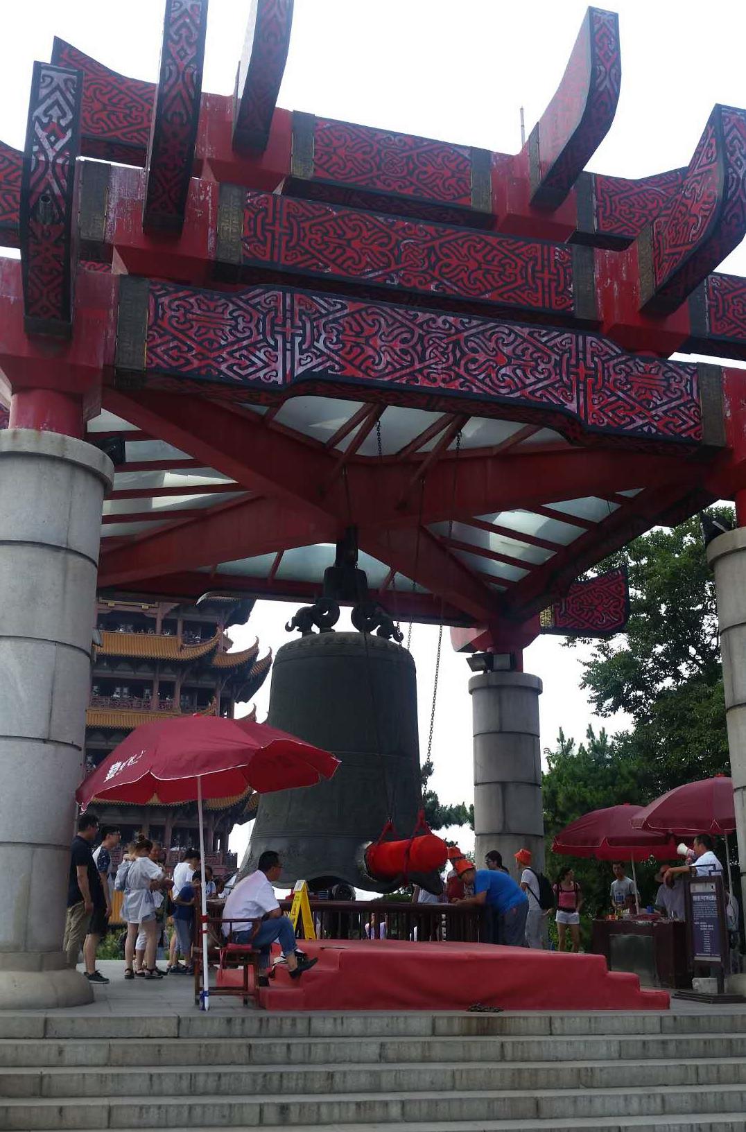很多游客為了撞大運都會去敲鐘,鐘聲很悠長、很美好,過了千禧鐘就看到了我們的終極目的地黃鶴樓,站在黃鶴樓門前有種迫不及待想登樓的感覺,登樓是來黃鶴樓必不可少的體驗,進(jìn)入主樓,才感受到黃鶴樓的“內(nèi)九外五”——原來內(nèi)部每兩層觀景處都有一個“隔層”,登上黃鶴樓,站在欄桿邊遠(yuǎn)眺,樓北是滾滾東流的長江,樓左、右和樓南是武昌、漢口城區(qū),不僅感嘆“黃鶴樓太壯觀了!”突然想到最具影響力的唐代詩人崔顥的《黃鶴樓》了,“昔人已乘黃鶴去,此地空余黃鶴樓。 黃鶴一去不復(fù)返,白云千載空悠悠…..” 最重要的是炎熱的夏天,在樓上竟然沒有感到很熱,微風(fēng)吹過臉頰,很舒服很涼快。
