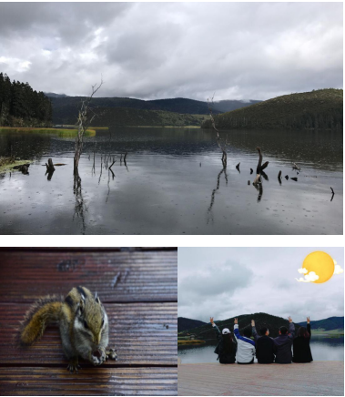 普達(dá)措國家公園有3條徒步路線,1和3是沙石路,2號(hào)為圍繞屬都湖建的木棧道,我們選擇了2號(hào)路線,棧道穿過湖邊的沼澤又穿過原始的森林,幽靜又充滿生機(jī),這里還能看到許多枯萎的樹干,雖然綠葉已不再生長,卻仍然屹立在湖水之間,在高原的藍(lán)天碧水間頗有滄桑的感覺,一個(gè)多小時(shí)的徒步過程中還遇到了愛吃零食的小松鼠,一點(diǎn)都不怕生跳上棧道問游客要零食。逛完美景正好到中午,也下起了小雨,回去吃了午飯,又美美的睡了一覺。一天,美景、美食、美夢,完美的生活。