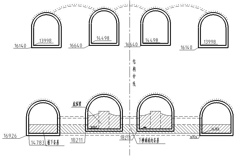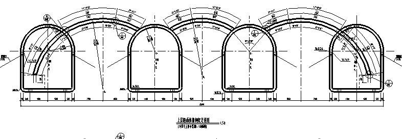 計(jì)算二襯混凝土、鋼筋及模板工程量,計(jì)算二襯背后防水層工程量、計(jì)算上層導(dǎo)洞噴射混凝土臨時(shí)支護(hù)量(詳見(jiàn)11)。