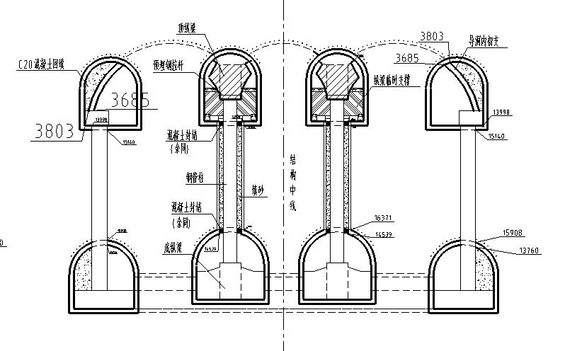 了解該部分工序后可以計(jì)算中間導(dǎo)洞洞內(nèi)鋼管柱成孔工程量(按米計(jì)算、包括人工挖土方、混凝土護(hù)壁)、鋼管柱的工程量(噸),鋼管柱內(nèi)灌注混凝土量、鋼管柱外壁回填砂工程量,計(jì)算頂縱梁混凝土、鋼筋及模板工程量。上導(dǎo)洞與初支間混凝土回填工程量,中間導(dǎo)洞臨時(shí)支護(hù)工程量(圖紙14)。