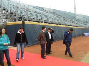 建設(shè)單位向項(xiàng)目組介紹五棵松體育館建設(shè)情況項(xiàng)目 組棒球場(chǎng)地現(xiàn)場(chǎng)踏勘
